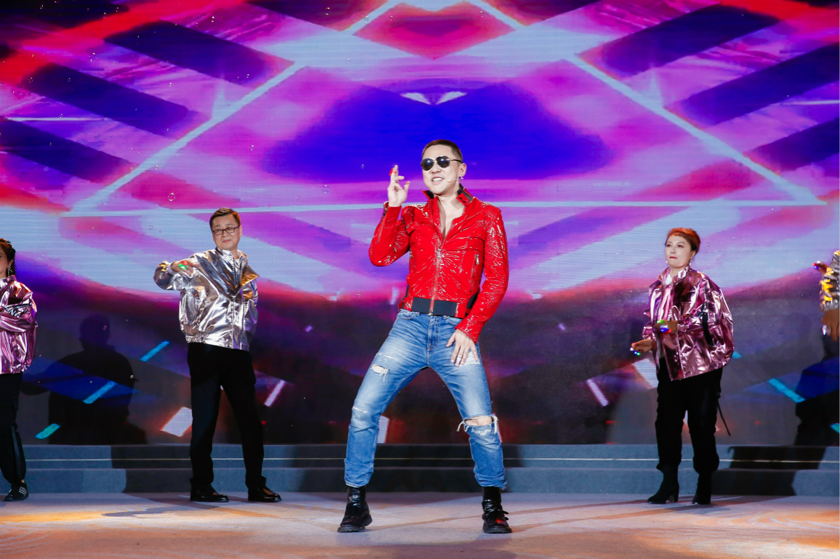 白總率領(lǐng)公司高管層唱跳國能版《野狼disco》,點燃全場熱情,把晚會推向高潮。