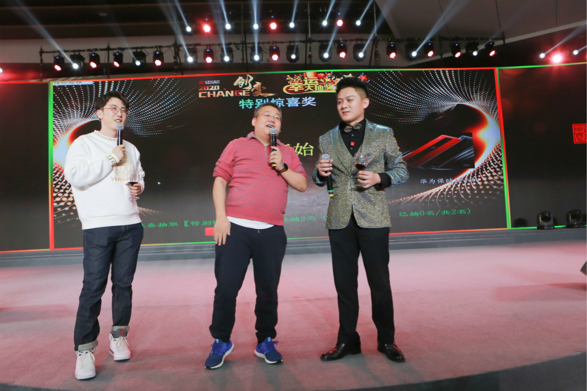 年會現(xiàn)場抽獎送出了若干華為手機(jī)、平板電腦、智能音箱等數(shù)百份驚喜大獎。